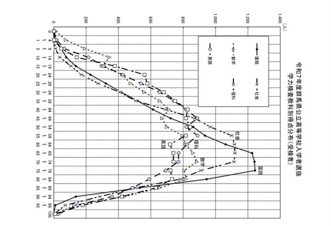 英語以外の4教科はまあまあきれいなグラフになっているのに対して、英語はひどいことになっています。得点のピークはなんと19点から39点です。昨年のグラフも載せてみましたが、今回は上位の得点を取っている方も多くないのです。なんとしてでも普通クラスで40点以上、特進クラスで80点以上取る努力をしていかなければいけませんね。