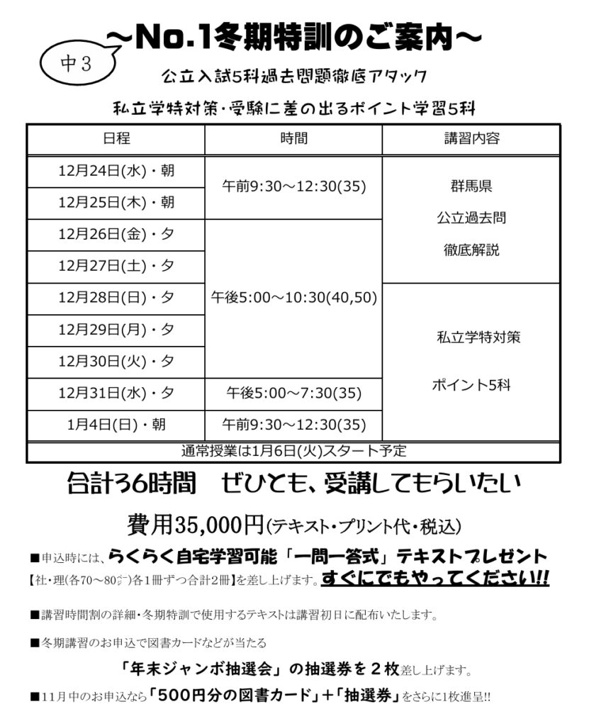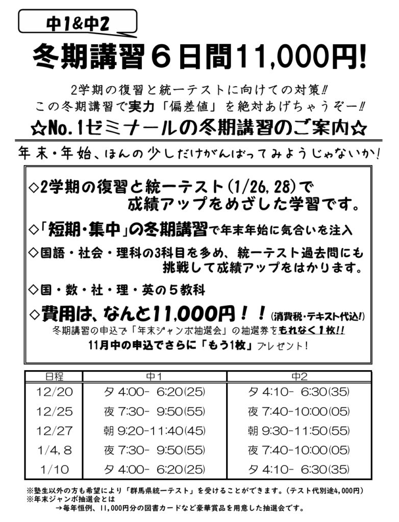 【中学生】冬期講習受付開始(11月中のお申込は特典付)